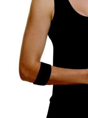| Epicondilites e outras afecções do cotovelo. Prevenção da recidiva na prática esportiva. Age mudando o vetor de tração, diminuindo a tensão. | |