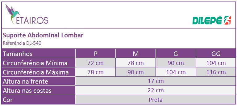 | Cinta ou Suporte Abdominal Lombar - DL-540 |
